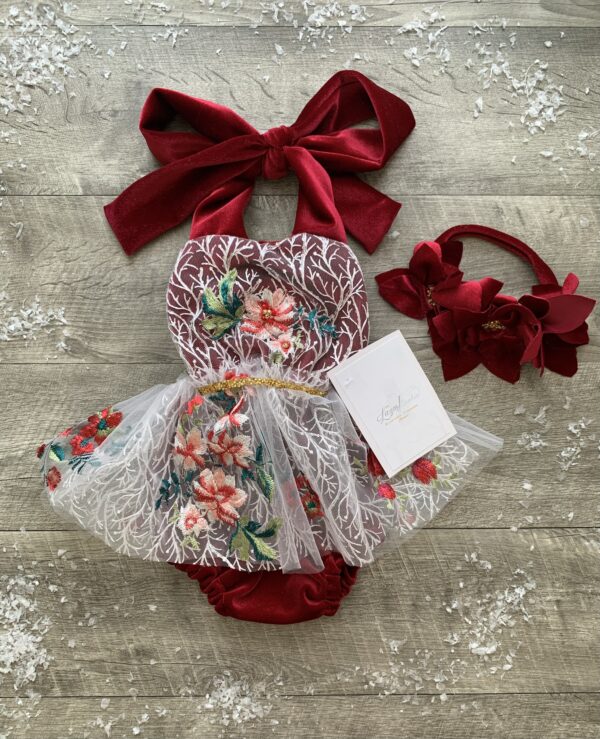 rojo en pana con elástico en la cintura es ajustable en la parte del cuello haciéndole un lazo.RECUERDA QUE LA MERCANCÍA NO TIENE CAMBIO!